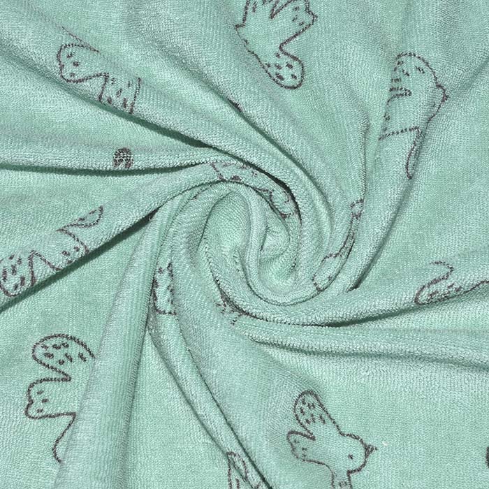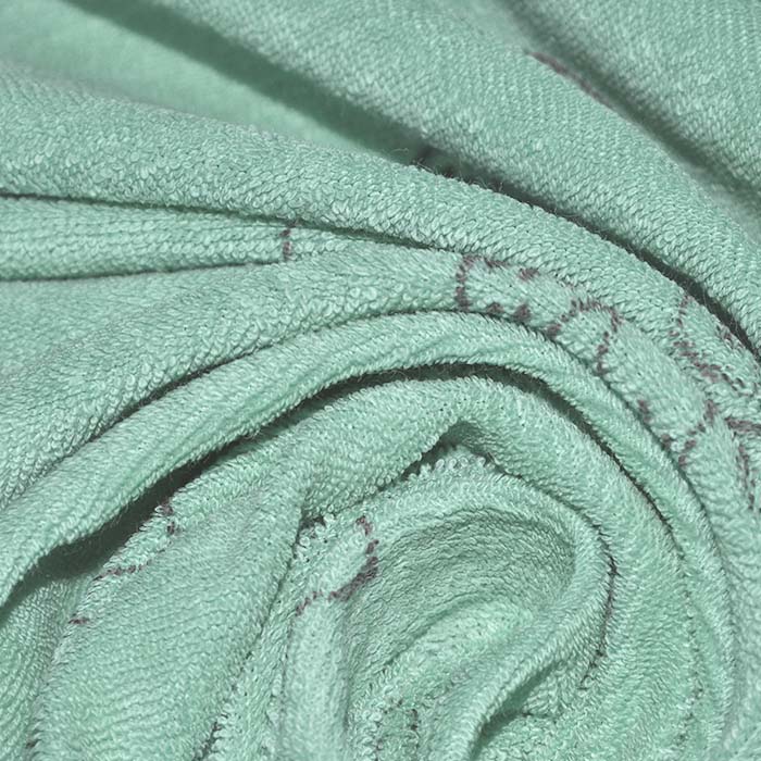 Elastisches Frottee ist ein weiches Baumwollgestrick mit sichtbaren Schlingen auf der Vorderseite. Es ist sehr saugfähig und wird daher am häufigsten für Bademäntel, Morgenmäntel, Spannbettlaken, Kleidung für Kinder usw. verwendet.