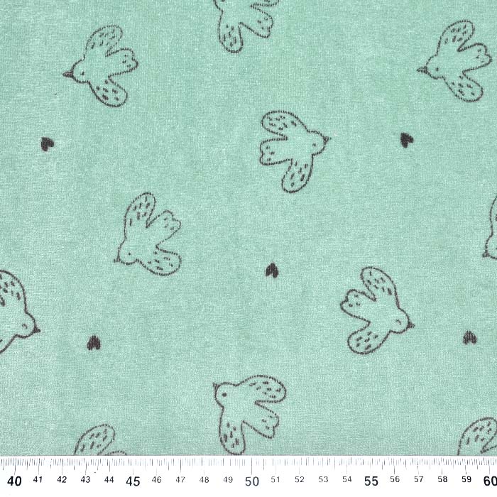 Vor der Verarbeitung ist Waschen erforderlich, da das Gestrick beim ersten Waschen einläuft. Eine übermäßige Dosierung von Weichspüler verringert die Saugfähigkeit des Materials. Die Schlingen auf dem Frottee werden durch Bügeln plattgedrückt, daher raten wir davon ab.