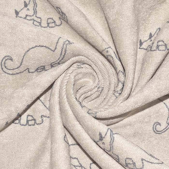Elastischer Frottee ist ein weiches Baumwollstrickgewebe mit auf der Vorderseite sichtbaren Schlingen. Es ist sehr saugfähig und wird daher am häufigsten für Bademäntel, Morgenmäntel, Spannbettlaken, Kleidung für Kinder usw. verwendet.