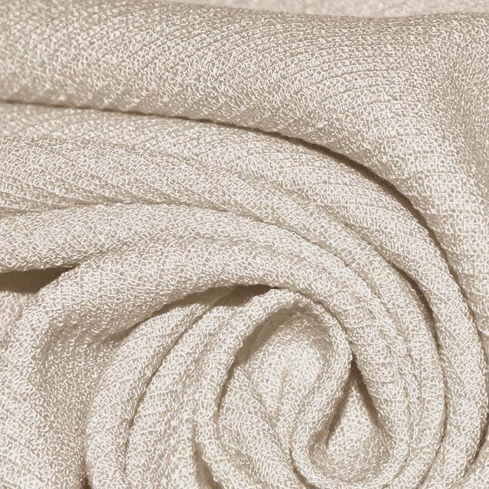 Weiches und angenehmes Reliefgeweb, das am häufigsten für Tuniken, T-Shirts, Rollkragenpullover, leichte Strickjacken, Kleider, Schals usw. verwendet wird.