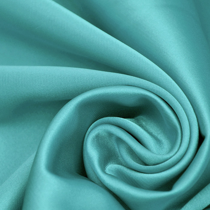 Polyester-Satin mit Elastan ist dünner einfarbiger Stoff, mit einem starken Glanz auf der rechten Seite. Es ist weich und hat einen schönen Fall, deswegen wird es am häufigsten für feierliche Kleidung, Kleider, Röcke, Tuniken, Blusen, Schals usw. verwendet.