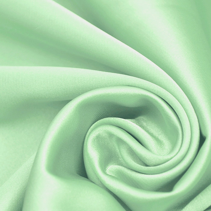 Polyester-Satin mit Elastan ist ein dünnes einfarbiges Gewebe mit starkem Glanz auf der rechten Stoffseite. Er ist weich und hat einen schönen Fall, deswegen wird er am häufigsten für festliche Kleidung, Kleider, Röcke, Tuniken, Blusen, Schals usw. verwendet.
