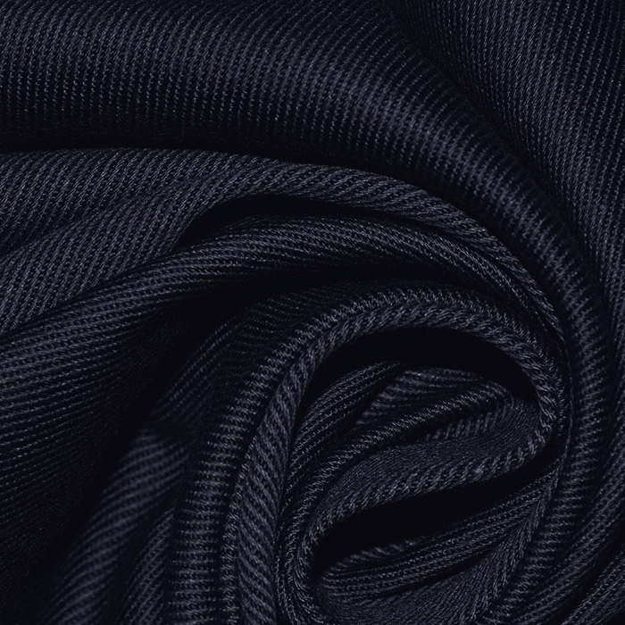 Baumwollköper ohne Elastan ist ein dichtes und dickes Gewebe in Köperbindung. In der Webstruktur sind die für Köper typischen, schrägen Linien sichtbar.