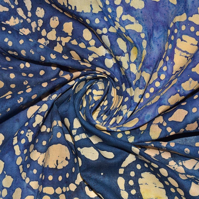 In Batik-Technik handbedrückter Baumwollstoff mit breitem Anwendungsbereich. Aus Batik-Stoff werden alle Arten von Kleidung hergestellt, von gewöhnlichen Hosen bis glamourösen Abendkleidern. Kann auch für Bilder, Tapisserie, Tischdecken, Bettdecken, Dekokissen, Taschen usw. verwendet werden.