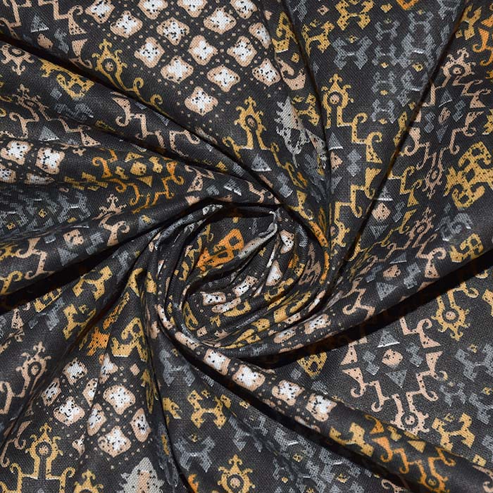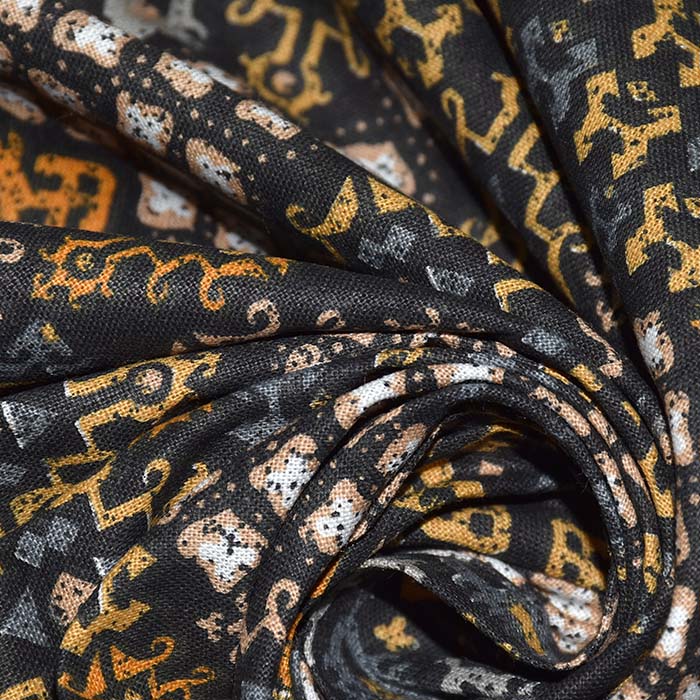 Baumwolle, Popeline, Ornament, 28610-01, schwarz