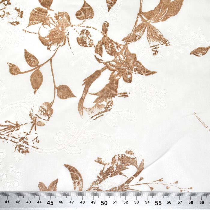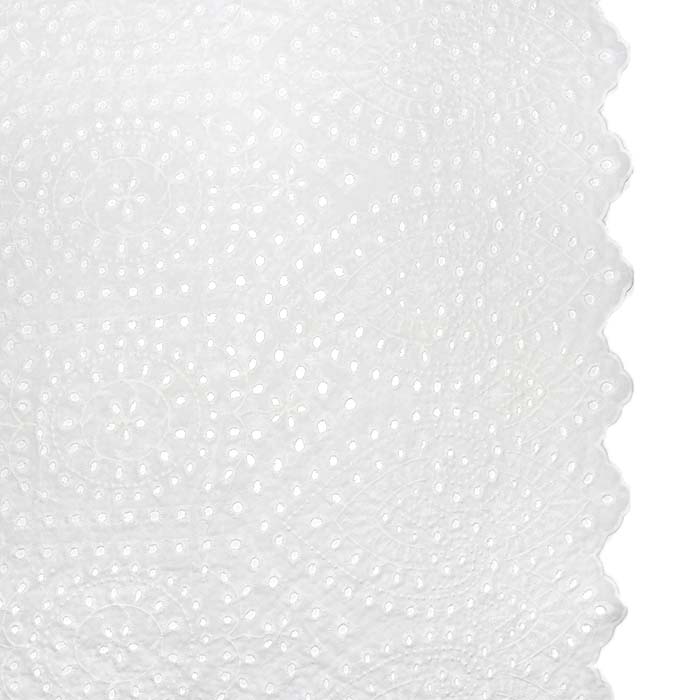 Dünnes Baumwollgewebe mit einem breiten Anwendungsbereich. Es ist mit Stickereien in Richelieu-Technik verziert. Die häufigsten Produkte aus diesem Material sind Tuniken, Hemden und Kleider, aber er kann auch für Vorhänge oder Dekorationen verwendet werden. Einen interessanten Effekt erzielt man mit einem Untergrund in einer anderen Farbe, der die Öffnungen im Stoff zusätzlich betont.
