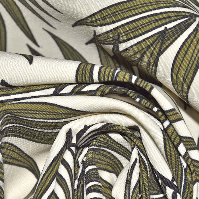 Bengalin-Gewebe mit Muster, das sich über die gesamte Länge erstreckt. Es eignet sich für die Herstellung von Jacken, Mänteln, als Accessoire oder für dekorative Zwecke. Es wird auch für Kleidungsstücke verwendet, bei denen das Volumen betont werden soll, z. B. bei Ballonröcken, da der Stoff fest und formstabil ist.