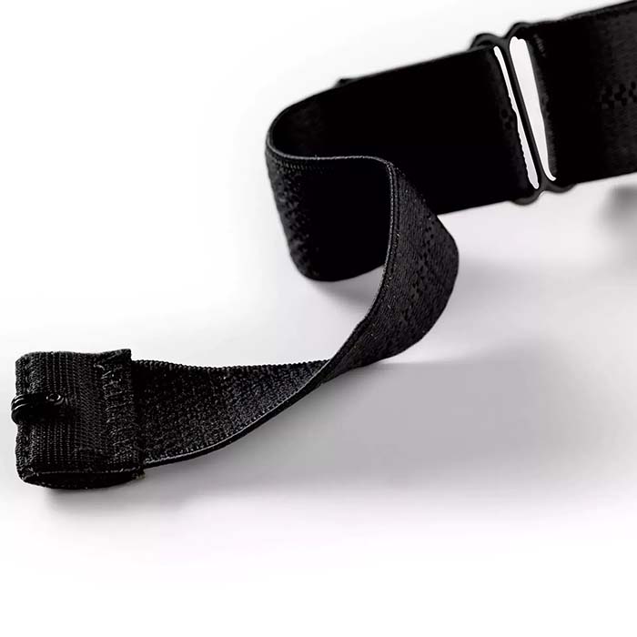 Die BH-Verlängerung ist ideal zum Tragen von Abendkleidern mit tiefem Rückenausschnitt. Sie ermöglicht, dass die BH-Träger nach unten gezogen und vorne am Bauch mit Häkchen und Ösen geschlossen werden. Sie besteht aus zwei 20 mm breiten Elastikbändern, die diagonal gekreuzt sind und sich in der Länge verstellen lassen – für optimalen Komfort.