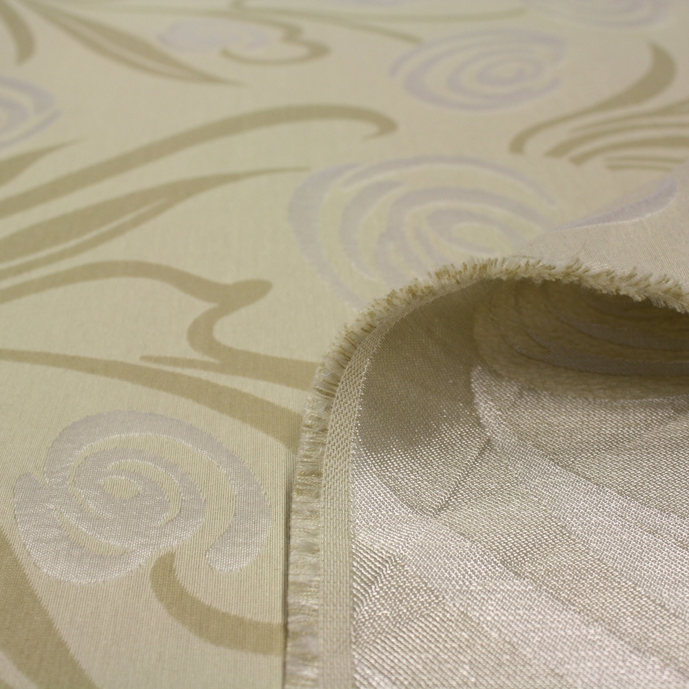 Dickerer und strapazierfähiger Stoff mit eingewebten Muster geeignet für die Verkleidung aller Arten von Polstermöbel, Herstellung von schweren dekorativen und Verdunklungsvorhängen, sowie Handtaschen und andere Accessoires. Kann auch für modische Mäntel und Jacketts verwendet werden. Der Stoff besteht aus einer Mischung von Polyester- und Viskosefasern, die eine gute mechanische Widerstandskraft und Beständigkeit gegen verblassen und ermöglichen ein leichteres reinigen als Stoffe mit einer 100% Zusammensetzung.