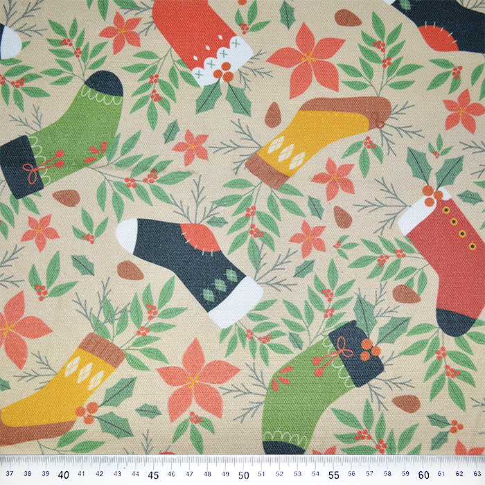 Das Gewebe ist eine Mischung von Baumwolle und Polyester, was eine leichtere Pflege und einen breiten Anwendungsbereich im Dekorations- und Bekleidungssegment ermöglicht. Am häufigsten wird es für Handtaschen, Tischdecken, Schürzen, dekorativen Gardinen, Dekokissen usw. benutzt.