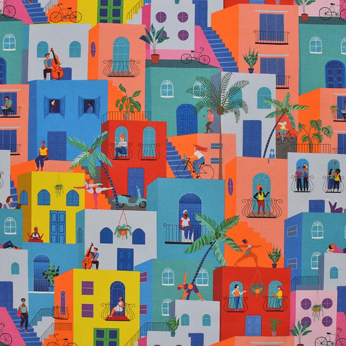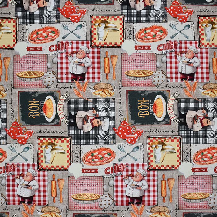 Das Gewebe ist eine Mischung von Baumwolle und Polyester, was eine leichtere Pflege und einen breiten Anwendungsbereich im Dekorations- und Bekleidungssegment ermöglicht. Am häufigsten wird es für Handtaschen, Tischdecken, Schürzen, dekorativen Gardinen, Dekokissen usw. benutzt.