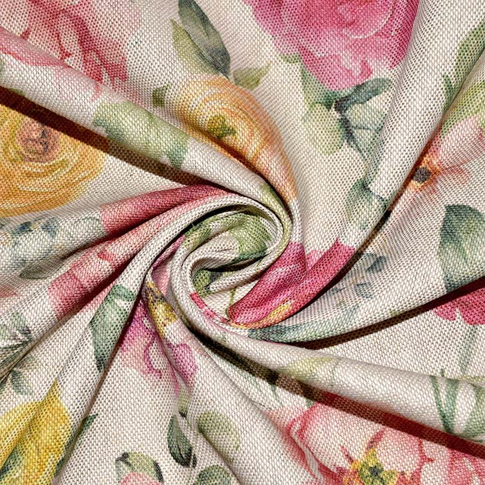 Das Gewebe ist eine Mischung von Baumwolle und Polyester, was eine leichtere Pflege und einen breiten Anwendungsbereich im Dekorations- und Bekleidungssegment ermöglicht. Am häufigsten wird es für Handtaschen, Tischdecken, Schürzen, dekorativen Gardinen, Dekokissen usw. benutzt.