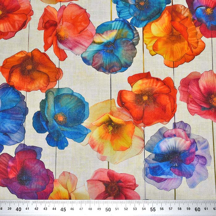 Das Gewebe ist eine Mischung von Baumwolle und Polyester, was eine leichtere Pflege und einen breiten Anwendungsbereich im Dekorations- und Bekleidungssegment ermöglicht. Am häufigsten wird es für Handtaschen, Tischdecken, Schürzen, dekorativen Gardinen, Dekokissen usw. benutzt.