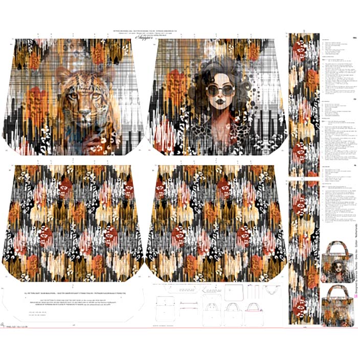 Baumwollgewebe mit Digitaldruck, auf dem der Druck ausgeschnitten und zu einer Wendetasche von ca. 55 x 45 cm verarbeitet werden kann.