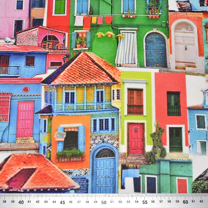 Das Gewebe ist eine Mischung von Baumwolle und Polyester, was eine leichtere Pflege und einen breiten Anwendungsbereich im Dekorations- und Bekleidungssegment ermöglicht. Am häufigsten wird es für Handtaschen, Tischdecken, Schürzen, dekorativen Gardinen, Dekokissen usw. benutzt.