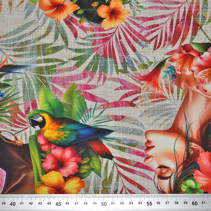 Das Gewebe ist eine Mischung von Baumwolle und Polyester, was eine leichtere Pflege und einen breiten Anwendungsbereich im Dekorations- und Bekleidungssegment ermöglicht. Am häufigsten wird es für Handtaschen, Tischdecken, Schürzen, dekorativen Gardinen, Dekokissen usw. benutzt.