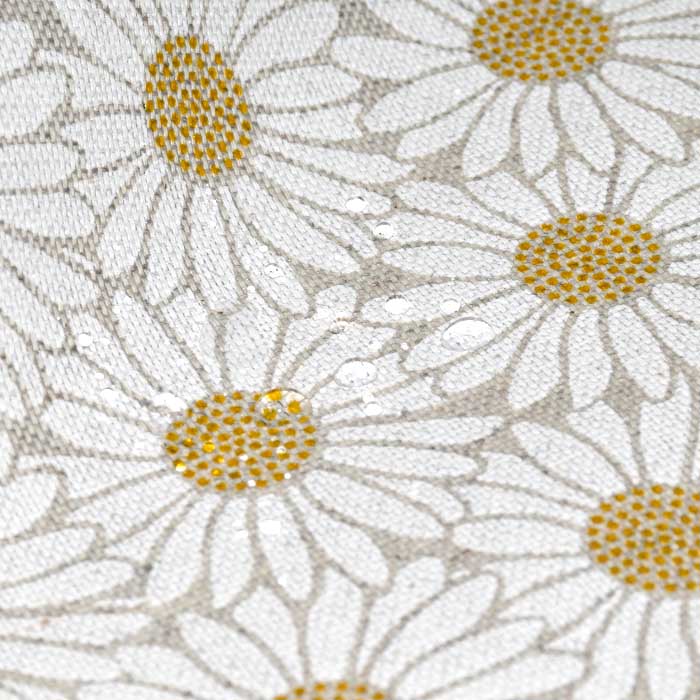 Das Gewebe mit imprägniertem Auftrag ist eine Mischung von Baumwolle und Polyester, was eine leichtere Pflege und einen breiten Anwendungsbereich im Dekorations- und Bekleidungssegment ermöglicht. Am häufigsten wird es für Handtaschen, Tischdecken, Schürzen, dekorativen Gardinen, Dekokissen usw. benutzt.