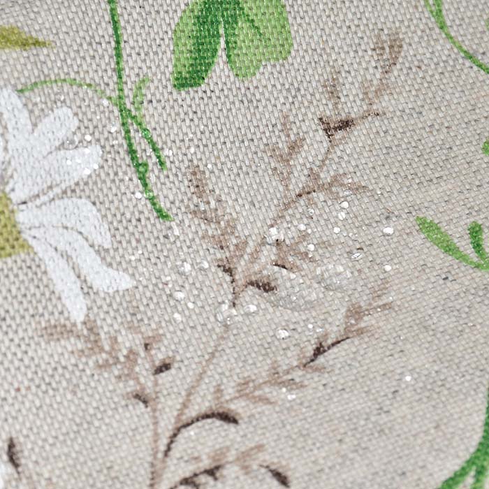 Gewebe mit imprägniertem Auftrag ist eine Mischung aus Baumwolle und Polyester, die eine einfachere Pflege und eine breitere Palette von Anwendungen im dekorativen Bereich ermöglicht. Er wird am häufigsten für die Herstellung von Taschen, Tischdecken, Schürzen, Zierkissen usw. verwendet.