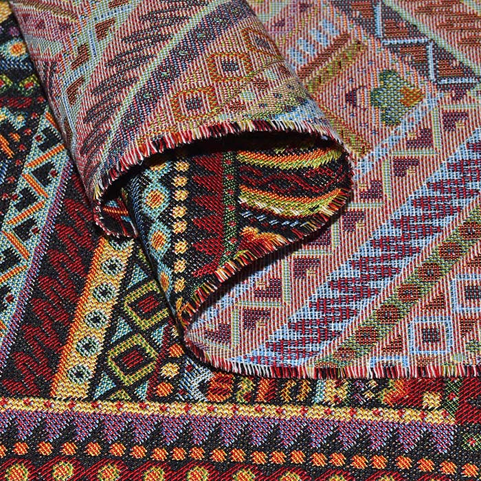 Dickes und dauerhaftes Gewebe mit Jacquardmuster, das auf beiden Seiten verwendet werden kann oder die Seiten werden miteinander kombiniert. Es eignet sich für Möbelpolsterung, schwere dekorative und Verdunkelungsvorhänge, sowie für Handtaschen und andere Accessoires. Kann auch für modische Mäntel und Cardigans verwendet werden. Für bessere mechanische Eigenschaften besteht das Gewebe aus Baumwolle/Polyester-Mischung, gleichzeitig behält es aber auch die natürliche Optik und Gefühl bei.