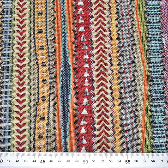 Dickes und dauerhaftes Gewebe mit Jacquardmuster, das auf beiden Seiten verwendet werden kann oder die Seiten werden miteinander kombiniert. Es eignet sich für Möbelpolsterung, schwere dekorative und Verdunkelungsvorhänge, sowie für Handtaschen und andere Accessoires. Kann auch für modische Mäntel und Cardigans verwendet werden. Für bessere mechanische Eigenschaften besteht das Gewebe aus Baumwolle/Polyester-Mischung, gleichzeitig behält es aber auch die natürliche Optik und Gefühl bei.