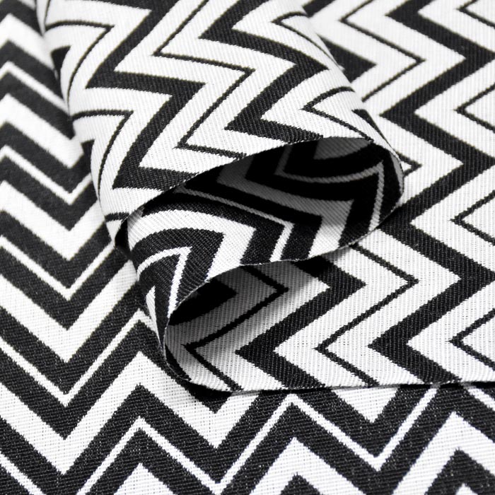 Dickes und dauerhaftes Gewebe mit Jacquardmuster, das auf beiden Seiten verwendet werden kann oder die Seiten werden miteinander kombiniert. Es eignet sich für Möbelpolsterung, schwere dekorative und Verdunkelungsvorhänge, sowie für Handtaschen und andere Accessoires. Kann auch für modische Mäntel und Cardigans verwendet werden. Für bessere mechanische Eigenschaften besteht das Gewebe aus Baumwolle/Polyester-Mischung, gleichzeitig behält es aber auch die natürliche Optik und Gefühl bei.