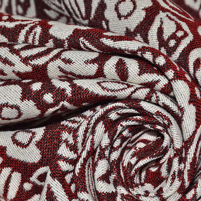 Dickes und dauerhaftes Gewebe mit Jacquardmuster, das auf beiden Seiten verwendet werden kann oder die Seiten werden miteinander kombiniert. Es eignet sich für Möbelpolsterung, schwere dekorative und Verdunkelungsvorhänge, sowie für Handtaschen und andere Accessoires. Kann auch für modische Mäntel und Cardigans verwendet werden. Für bessere mechanische Eigenschaften besteht das Gewebe aus Baumwolle/Polyester-Mischung, gleichzeitig behält es aber auch die natürliche Optik und Gefühl bei.