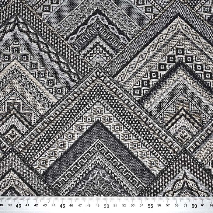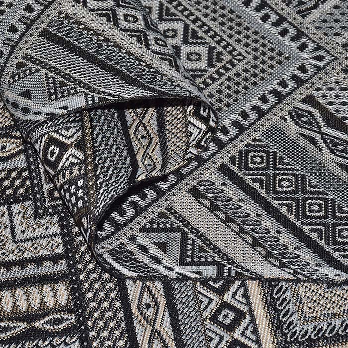 Dickes und dauerhaftes Gewebe mit Jacquardmuster, das auf beiden Seiten verwendet werden kann oder die Seiten werden miteinander kombiniert. Es eignet sich für Möbelpolsterung, schwere dekorative und Verdunkelungsvorhänge, sowie für Handtaschen und andere Accessoires. Kann auch für modische Mäntel und Cardigans verwendet werden. Für bessere mechanische Eigenschaften besteht das Gewebe aus Baumwolle/Polyester-Mischung, gleichzeitig behält es aber auch die natürliche Optik und Gefühl bei.