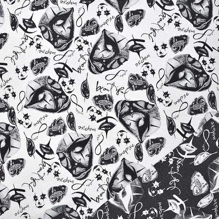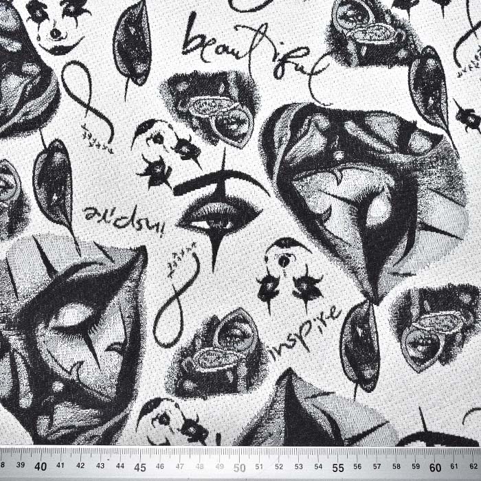 Dekojacquard, beidseitig, Gesichter, 26881-13, schwarz-weiß