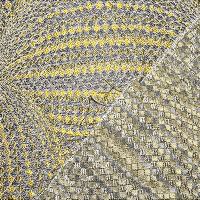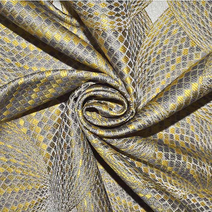 Dickes und dauerhaftes Gewebe mit Jacquardmuster, das auf beiden Seiten verwendet werden kann oder die Seiten werden miteinander kombiniert. Es eignet sich für Möbelpolsterung, schwere dekorative und Verdunkelungsvorhänge, sowie für Handtaschen und andere Accessoires. Kann auch für modische Mäntel und Cardigans verwendet werden. Für bessere mechanische Eigenschaften besteht das Gewebe aus Baumwolle/Polyester-Mischung, gleichzeitig behält es aber auch die natürliche Optik und Gefühl bei.
