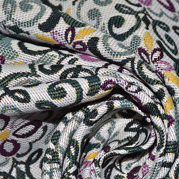 Dickes und dauerhaftes Gewebe mit Jacquardmuster, das auf beiden Seiten verwendet werden kann oder die Seiten werden miteinander kombiniert. Es eignet sich für Möbelpolsterung, schwere dekorative und Verdunkelungsvorhänge, sowie für Handtaschen und andere Accessoires. Kann auch für modische Mäntel und Cardigans verwendet werden. Für bessere mechanische Eigenschaften besteht das Gewebe aus Baumwolle/Polyester-Mischung, gleichzeitig behält es aber auch die natürliche Optik und Gefühl bei.