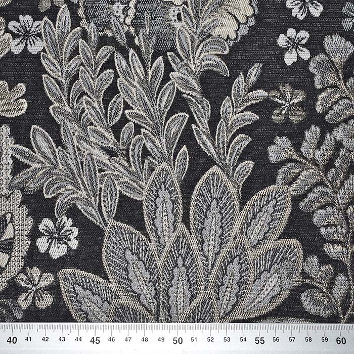 Strapazierfägihes Gewebe mit Jacquardmuster, das auf beiden Seiten verwendet werden kann oder die Seiten werden miteinander kombiniert. Es eignet sich für Möbelpolsterung, schwere dekorative und Verdunkelungsvorhänge, sowie für Handtaschen und andere Accessoires. Kann auch für modische Mäntel und Cardigans verwendet werden. Für bessere mechanische Eigenschaften besteht das Gewebe aus Baumwolle/Polyester-Mischung, gleichzeitig behält es aber auch die natürliche Optik und Gefühl bei.