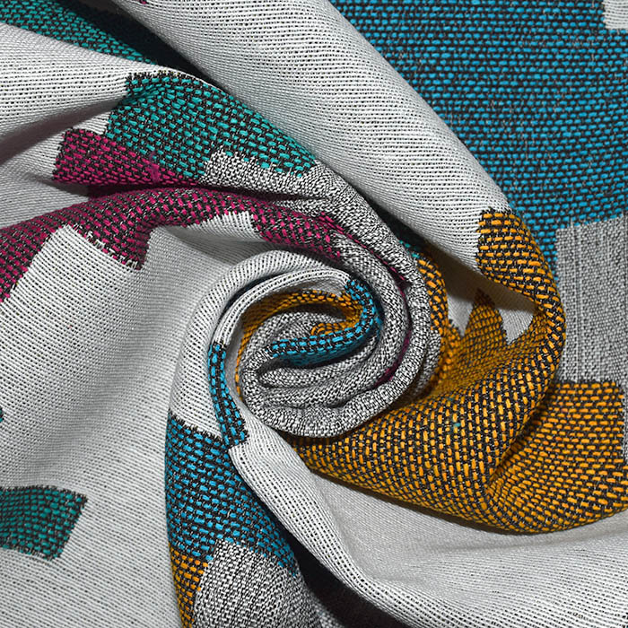 Dickes und dauerhaftes Gewebe mit Jacquardmuster, das auf beiden Seiten verwendet werden kann oder die Seiten werden miteinander kombiniert. Es eignet sich für Möbelpolsterung, schwere dekorative und Verdunkelungsvorhänge, sowie für Handtaschen und andere Accessoires. Kann auch für modische Mäntel und Cardigans verwendet werden. Für bessere mechanische Eigenschaften besteht das Gewebe aus Baumwolle/Polyester-Mischung, gleichzeitig behält es aber auch die natürliche Optik und Gefühl bei.