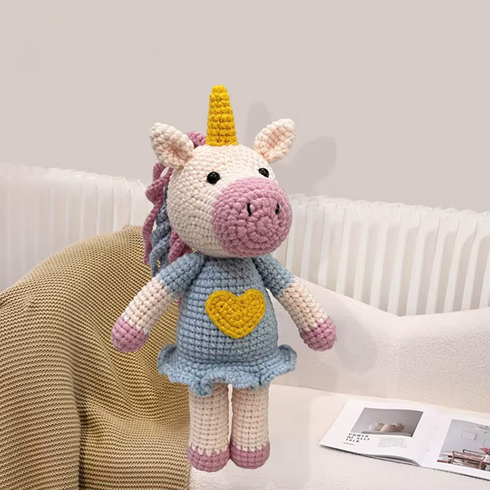 Unser DIY-Set zum Häkeln Einhorn ist ein komplettes Kreativpaket, das alles enthält, was Sie zur Herstellung eines niedlichen Häkelspielzeugs benötigen. Im Set erhalten Sie die entsprechende Menge an hochwertigem Garn, eine Häkelnadel, alle für die Herstellung erforderlichen Hilfsmittel und eine verständliche Bilderanleitung. Im Paket sind englische Anleitungen enthalten.