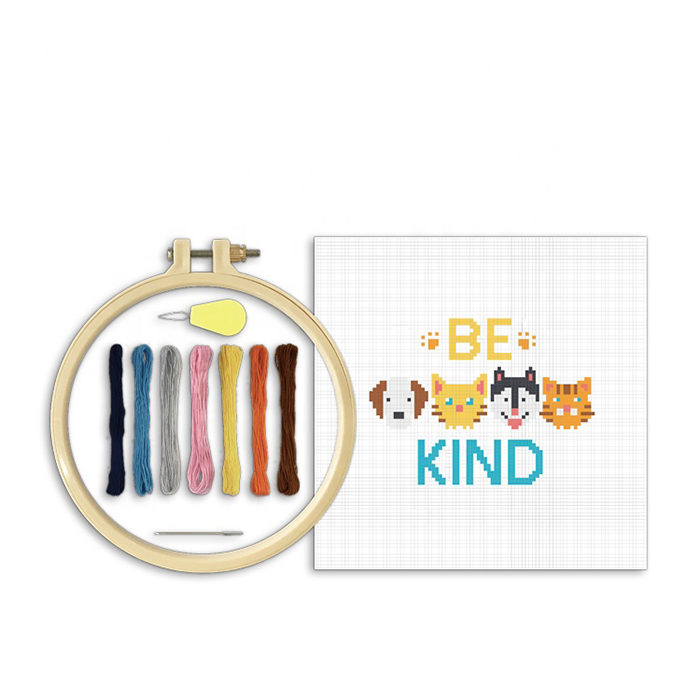Mit diesem DIY-Stickset kreieren Sie ein wunderschönes Stickmotiv mit der Aufschrift „Be kind“, das sich perfekt für Ihr Zuhause, das Kinderzimmer oder als persönliches Geschenk eignet. Das Set enthält alles, was Sie benötigen: 100 % Baumwoll-Aida-Stoff, vorsortierte farbige Garne, eine Nadel, einen Stickrahmen und eine verständliche Bildanleitung. Das Set enthält auch ein markiertes Schema, damit Sie wissen, wo und welchen Faden Sie verwenden müssen – ideal auch für absolute Anfänger (empfohlenes Alter ab 6 Jahren). Im Paket sind englische Anleitungen enthalten.