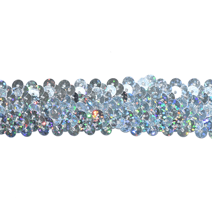 Dekoratives Elastikband mit angenähten Pailletten. Kann selbstständig oder zu Dekorationszwecken, bei Kostümen usw. verwendet werden.