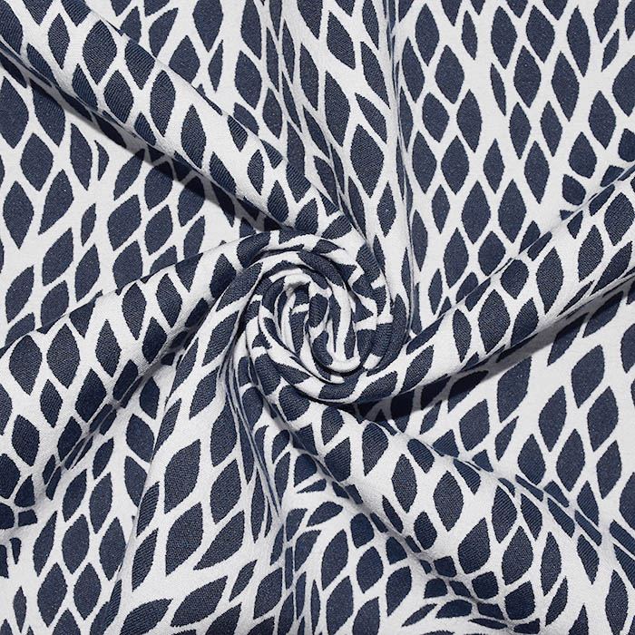 Elastisches Gewebe mit Jacquardmuster und zartem Glanz, geeignet für Röcke, Kleider, Jacken, Mäntel, sowie als Dekoration für Dekokissen, Beutel u.Ä. Das Muster wird durch das Durchflechten verschiedener Fäden geformt.