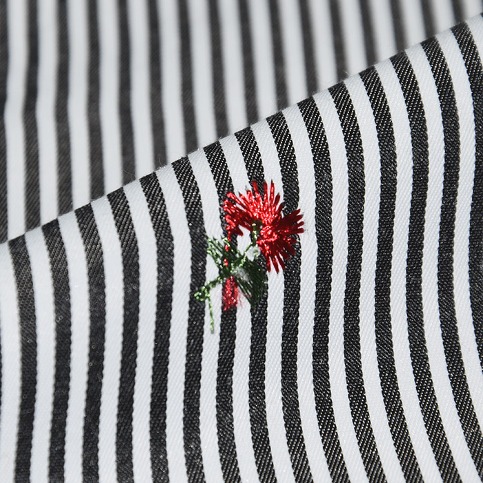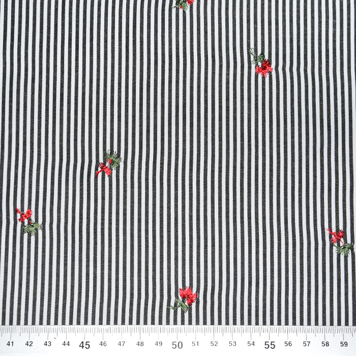 Unelastisches dünnes Gewebe aus Polyester und Viskose mit gesticktem Muster. Geeignet vor allem für Sommerkleidung, Blusen, Tuniken, Kleider usw. Der Stoff ist sehr tragefreundlich und wirft keine Falten.