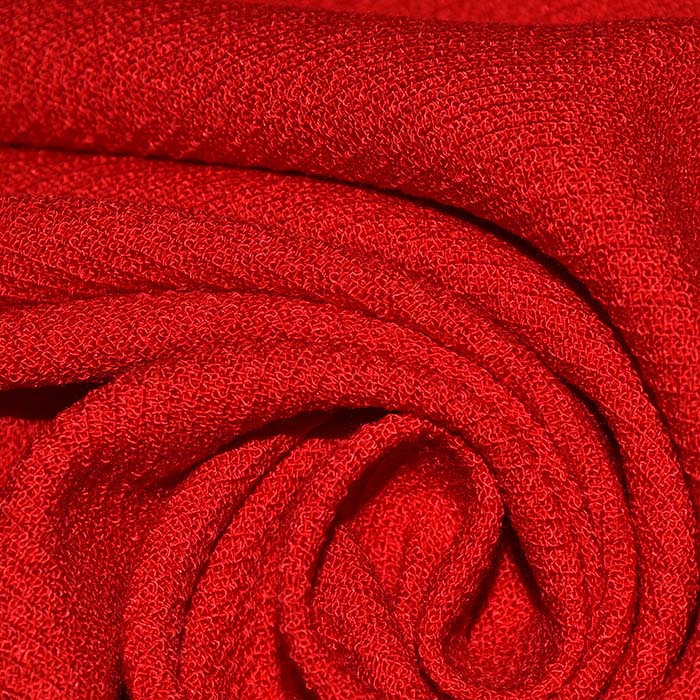Weiches und angenehmes Reliefgeweb, das am häufigsten für Tuniken, T-Shirts, Rollkragenpullover, leichte Strickjacken, Kleider, Schals usw. verwendet wird.