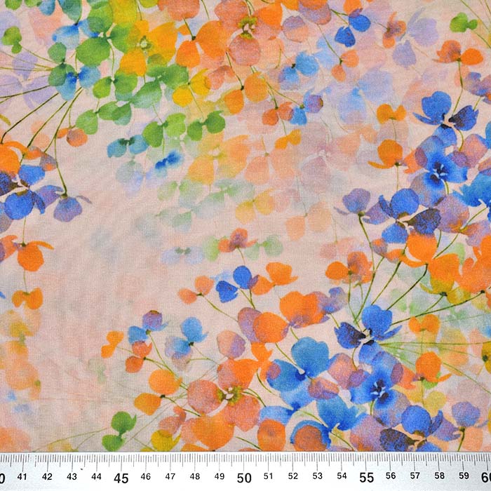 Gewebe, Viskose, digital, floral, 29188-001, orange-blau