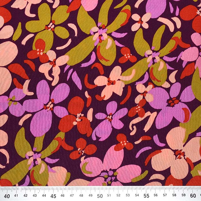 Gewebe, Viskose, floral, 29823-006, bordeaux-violett