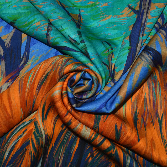Viskose ist eine regenerierte Zellulosefaser (durch chemische Verfahren aus natürlicher Zellulose hergestellte Faser), die verschiedene Materialien, z.B. Seide, Baumwolle und Wolle, nachahmt. Viskose ist angenehm weich, glatt, dünn und hat einen schönen Fall. Wegen der Kühlung, die es bietet, ist sie sehr im Sommer beliebt.