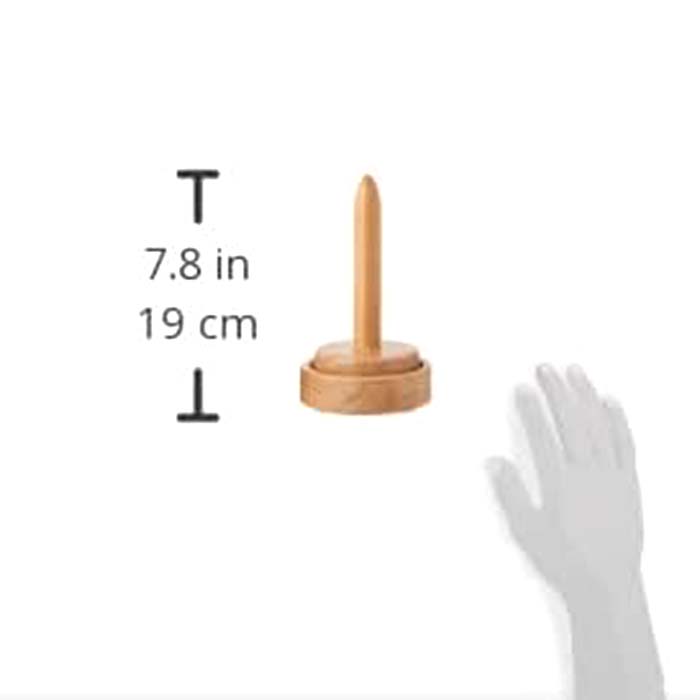 Eleganter Griff aus poliertem Buchenholz, um das Abwickeln der Wolle beim Stricken zu erleichtern.