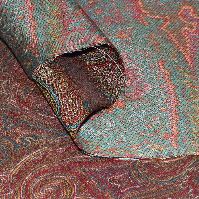 Gewebe mit Jacquardmuster, das beidseitig verwendet werden kann oder bei dem die Seiten miteinander kombiniert werden können. Es eignet sich zur Herstellung von Jacken und Mänteln, kann als Accessoire oder zu dekorativen Zwecken verwendet werden.