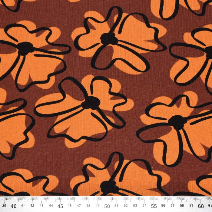 Jersey, Baumwolle, floral, 28320-1012, orange-braun
