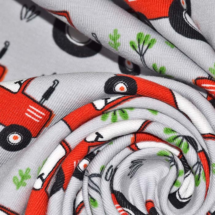 Baumwolljersey ist elastisch und fühlt sich angenehm an. Am meisten wird er für T-Shirts, Kleider, Sportkleidung, Freizeitkleidung, Leggings, Kinderbekleidung, Unterwäsche, Mützen, Bänder usw. benutzt. Er ist leicht zu pflegen und extrem saugfähig.