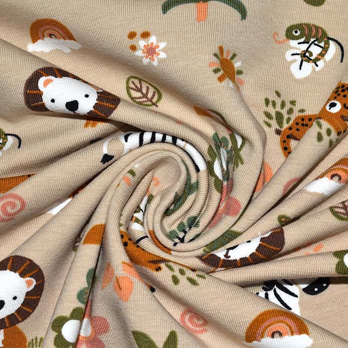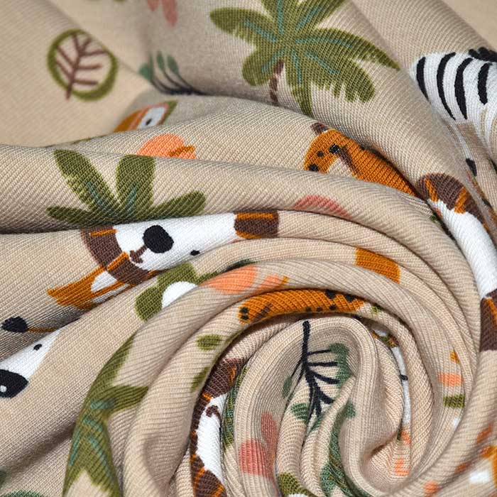 Baumwolljersey ist elastisch und fühlt sich angenehm an. Am meisten wird er für T-Shirts, Kleider, Sportkleidung, Freizeitkleidung, Leggings, Kinderbekleidung, Unterwäsche, Mützen, Bänder usw. benutzt. Er ist leicht zu pflegen und extrem saugfähig.
