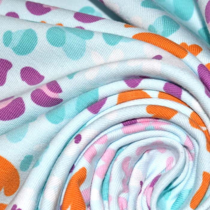 Baumwolljersey ist elastisch und fühlt sich angenehm an. Am häufigsten wird er für T-Shirts, Tuniken, Sportbekleidung, Trainingsanzüge, Leggings, Kleidung für Kinder, Unterwäsche, Mützen, Bänder usw. verwendet. Er zeichnet sich durch pflegeleichte Handhabung und eine außergewöhnliche Saugfähigkeit aus.