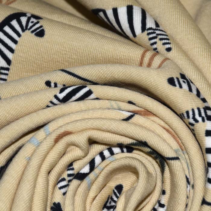 Baumwolljersey ist elastisch und fühlt sich angenehm an. Am meisten wird er für T-Shirts, Kleider, Sportkleidung, Freizeitkleidung, Leggings, Kinderbekleidung, Unterwäsche, Mützen, Bänder usw. benutzt. Er ist leicht zu pflegen und extrem saugfähig.