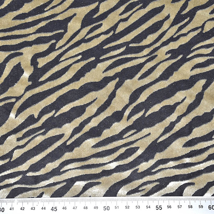Polyesterwirkware mit Veloursdruck, das sich durch Elastizität, Weichheit und einen schönen Fall auszeichnet. Am häufigsten wird sie für leichte Kleidungsstücke, Tuniken, Hemden, Kleider, Tanzkostüme, Futter usw. verwendet.