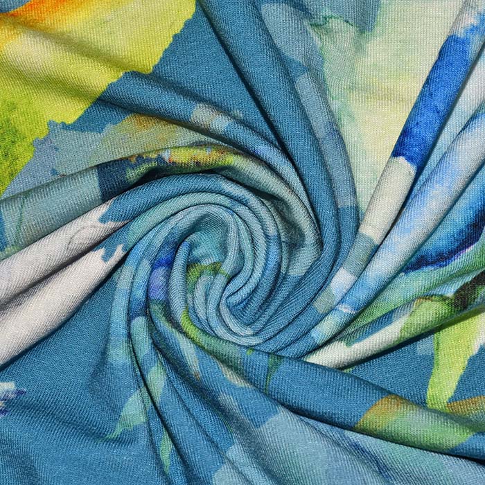 Jersey-Viskose wird am meisten für T-Shirts, Tuniken, Leggings, Kleider, Cardigans, Tücher, Schals, Strampler, weite Hosen, Röcke usw. benutzt.